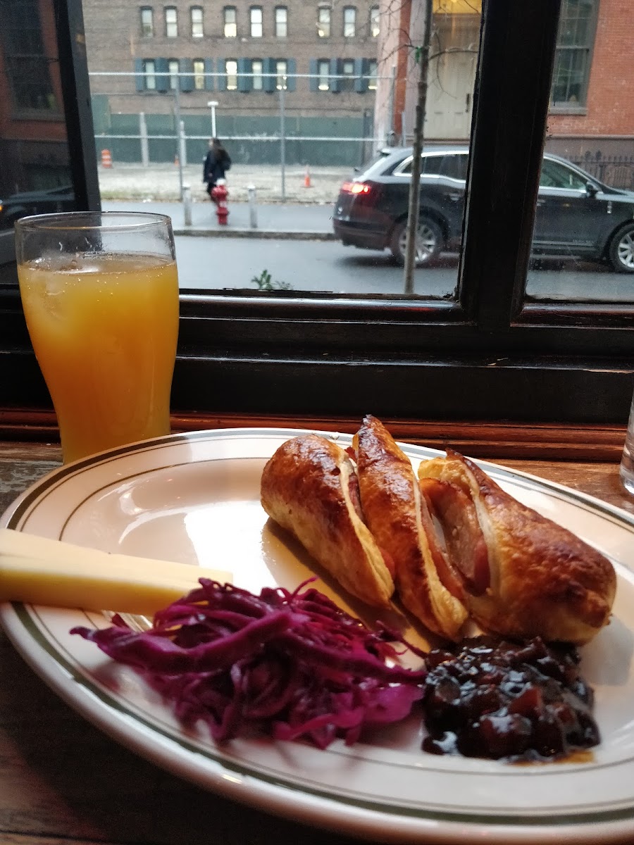 This is one of the most beautiful bars I've been to. The murals on the walls are beautiful. The bar gives an old time feel. The shelves are actually made from church pews from Ireland. The Sausage Roll with mustard and Branson Pickle was delicious. Great Guinness pour. The prices are reasonable and there's a huge selection of whiskeys and other liquors as well. The beer selection is good. They also have some nice cocktails. Kevin, the bartender was very nice. I will definitely be back